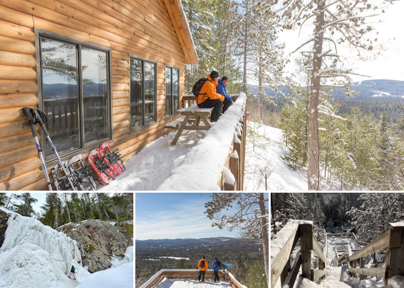 Situé dans le Parc national du Mont-Tremblant, accessible par l’entrée de Pimbina-Saint-Donat, le Mont-des-Cascades est un excellent choix si tu cherches un défi un peu plus exigeant. Avec un parcours de 8,6 km et un dénivelé d’environ 370 m, il s’adresse à ceux qui ont de l’énergie à dépenser ou qui veulent un bel entraînement hivernal. Le sentier t’offre de magnifiques paysages enneigés et, à mi-parcours, un refuge pour te réchauffer. La montée vaut la peine pour la vue panoramique et la nature sauvage qui t’entoure.